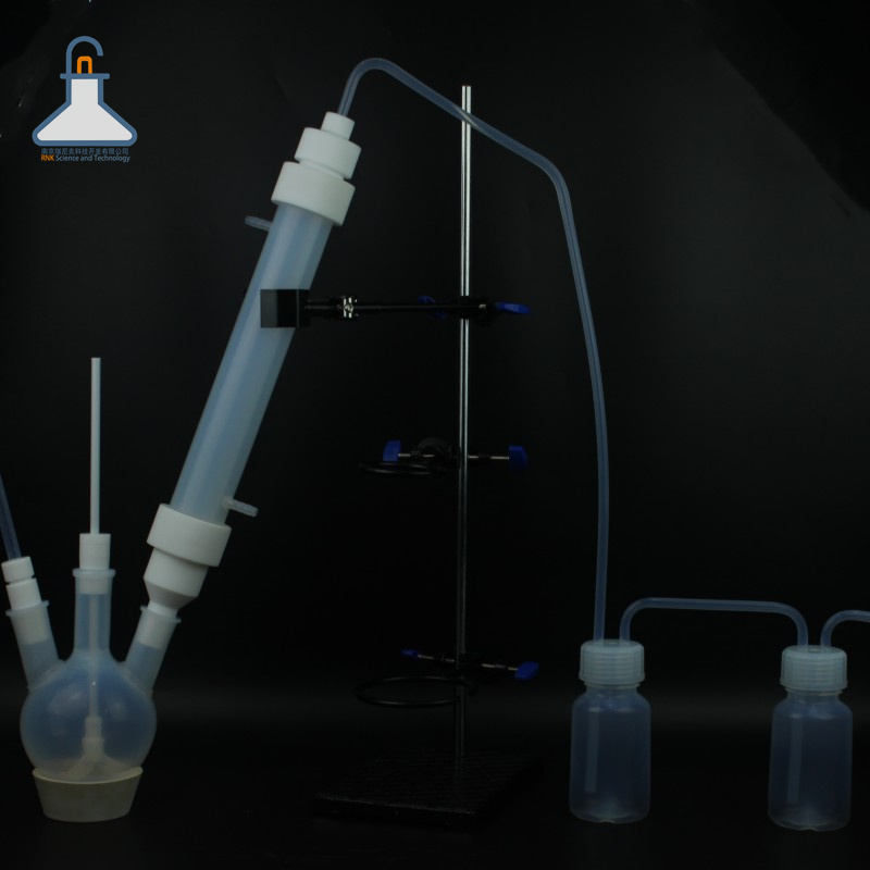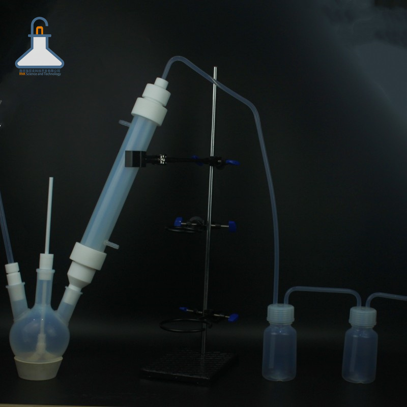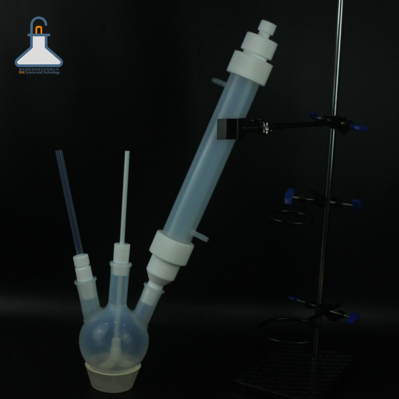 氟化氫精餾裝置系列 PFA四氟燒瓶反應(yīng)瓶耐酸堿氟化氫反應(yīng)裝置可定制減壓蒸餾裝置 材料:PFA 規(guī)格:PFA 描述:PFA精餾柱是精餾塔的縮小版精餾是利用混合物中各組分揮發(fā)度不同而將各組分加以分離的一種分離過(guò)程其實(shí)作用就是分離過(guò)濾,客戶一般會(huì)在精餾柱中放高效精密填料也叫填充物,以實(shí)現(xiàn)待分離組分的分離提純,精餾柱的底部也會(huì)放篩板進(jìn)行過(guò)濾到燒瓶中加熱進(jìn)行下一··· 產(chǎn)品詳情 PFA精餾柱是精餾塔的縮小版精餾是利用混合物中各組分揮發(fā)度不同而將各組分加以分離的一種分離過(guò)程其實(shí)作用就是分離過(guò)濾,客戶一般會(huì)在精餾柱中放高效精密填料也叫填充物,以實(shí)現(xiàn)待分離組分的分離提純,精餾柱的底部也會(huì)放篩板進(jìn)行過(guò)濾到燒瓶中加熱進(jìn)行下一步的反應(yīng)。燒瓶進(jìn)行加熱,產(chǎn)生的氣體和液體在精餾柱中過(guò)濾反應(yīng),氣體會(huì)蒸發(fā)到頂部過(guò)到冷凝中進(jìn)行冷凝過(guò)濾后的液體流到燒瓶中繼續(xù)反復(fù)加熱 蒸發(fā) 過(guò)濾 最終冷凝。目前市場(chǎng)上多用到的是玻璃精餾柱,目前我公司生產(chǎn)的是PFA精餾柱,可耐受氟化氫和氫氟酸,耐受有機(jī)溶劑,各種尺寸均可定制